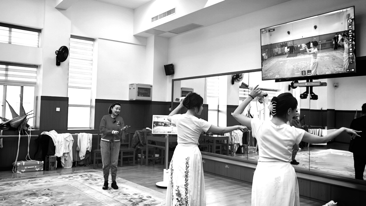 “你们看看回放,是不是身体有点板?应该加上点小动作,再灵动一些……”中国戏曲学院京昆系副教授张艳红在排练厅内指导两个学生学习京剧《卖水》选段。学生的身段和唱腔被人工智能设备记录下来,一个片段结束,张艳红操作鼠标在大屏幕上实时回放教学录像,指导学生注意细节,调整不到位的动作。