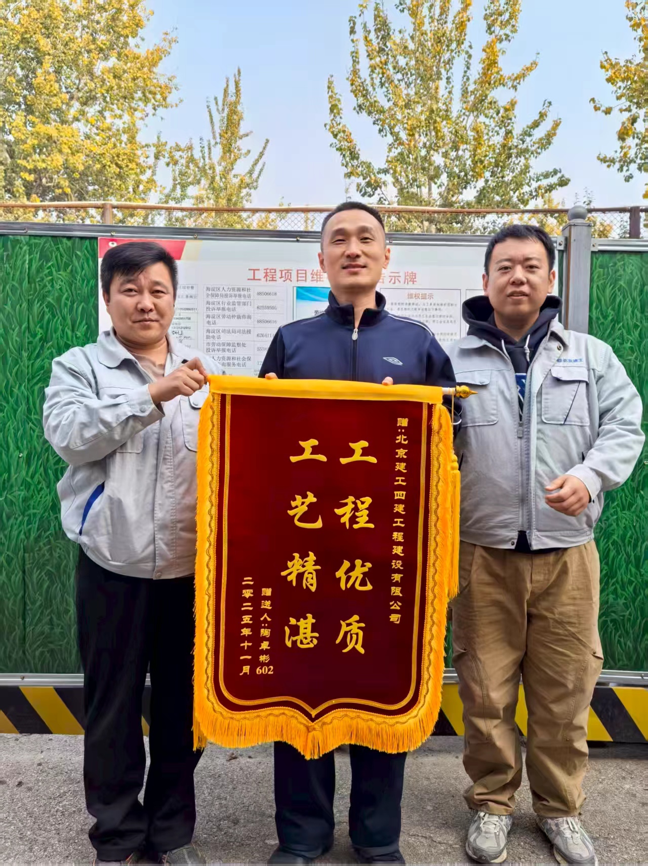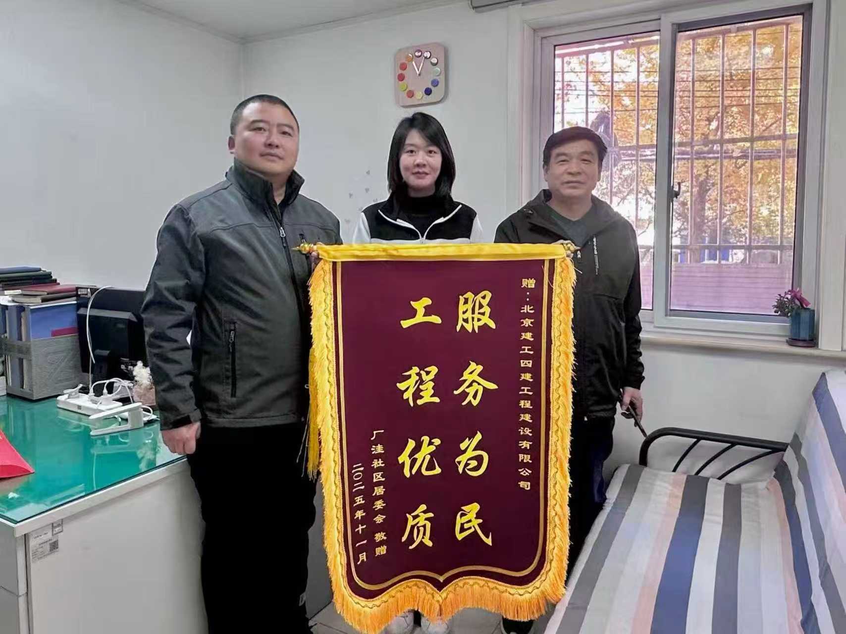 近日,在位于海淀区紫竹院街道的北京建工四建公司老旧小区改造项目部,几位居民代表以及居委会成员将写有“工程优质 服务为民”“热心服务 心系业主”字样的锦旗,亲手送到项目团队手中。没有隆重的仪式,没有华丽的辞藻,但这一面面锦旗背后,是居民们发自内心的认可与感谢。