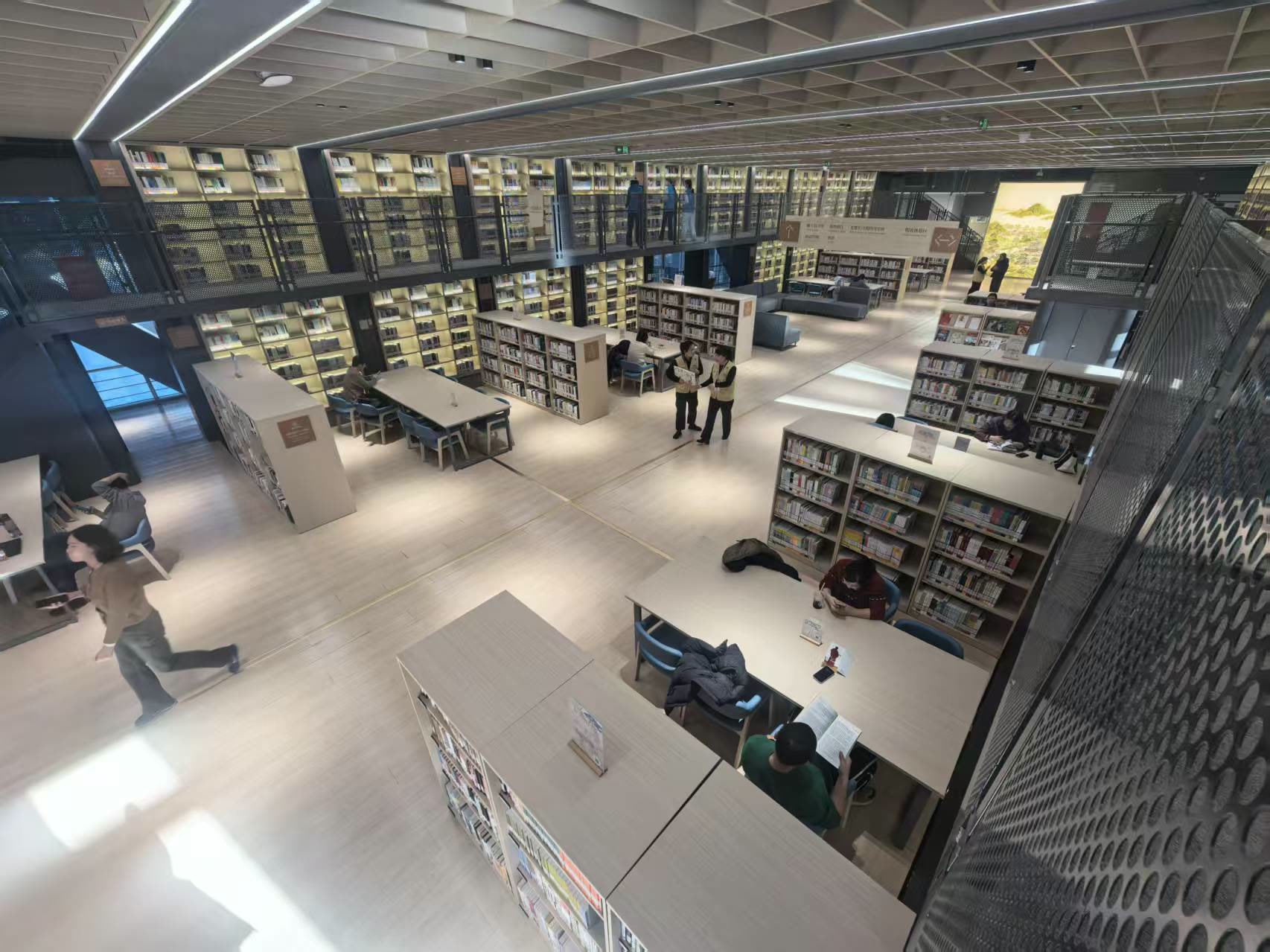 永丰馆精心打造多个特色功能区域,以适应多元的知识活动与社群需求。“天方”与“夜谭”阶梯教室,分别以温润木质和科技质感,象征人文与科技的对话,承载从深度讲座到创新研讨的各类活动;“跃动空间”定位为舞蹈戏剧工坊,让身体律动与思维激荡相辅相成;“墨场”展厅则作为一个灵活多变的开放场域,持续举办艺术展览、科技发布与文化沙龙。馆内各大功能区域划分,打破了传统图书馆的空间局限,实现了专注阅读与协作交流的无缝衔接,不仅满足基础阅读需求,更成为各类特色活动的重要载体,尽显“青年友好”的服务定位。此外,综合服务区还涵盖人才交流空间、轻食休憩区与儿童小舞台,如星澜空间、星织绘本仓、萤火少儿区等,细致关照从专业对谈到亲子共乐的全方位需求。